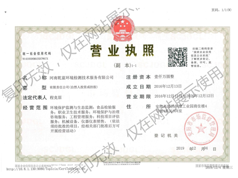 河南乾藍(lán)環(huán)境檢測技術(shù)服務(wù)有限公司